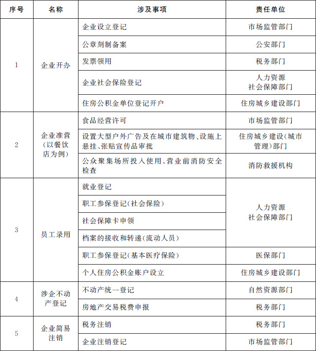 (一)推進企業(yè)全生命周期相關(guān)政務服務事項“一件事一次辦”。圍繞企業(yè)從開辦到注銷全生命周期的重要階段,梳理集成同一階段內(nèi)需要到政府部門、公用企事業(yè)單位和服務機構(gòu)辦理的多個單一政務服務事項,為企業(yè)提供開辦、工程建設、生產(chǎn)經(jīng)營、惠企政策兌現(xiàn)、員工錄用、不動產(chǎn)登記、注銷等集成化辦理服務,提高辦事效率,降低辦事成本。