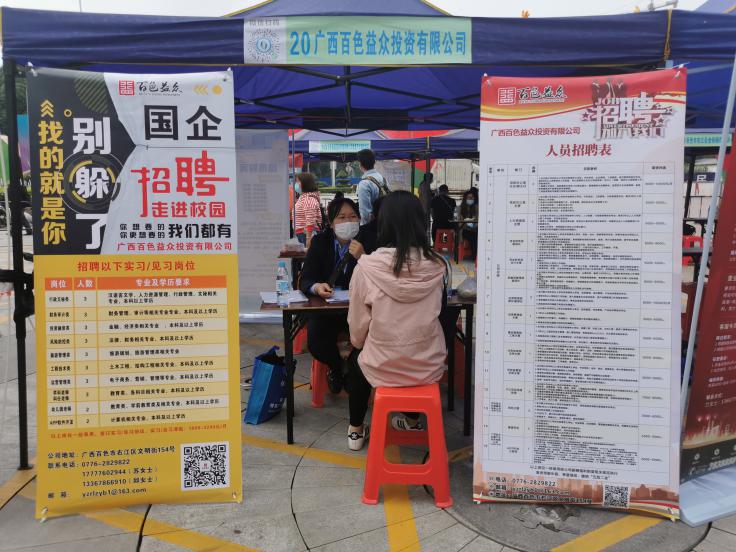 ????????近日,益眾公司組織參加2021屆廣西財經(jīng)類高校畢業(yè)生就業(yè)雙向選擇洽談會和2020年百色市離校未就業(yè)高校畢業(yè)生專場招聘會 。