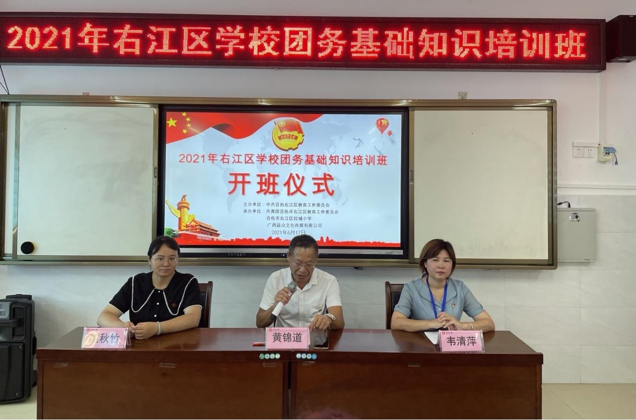 ????????為進(jìn)一步加強(qiáng)右江區(qū)學(xué)校團(tuán)干隊(duì)伍業(yè)務(wù)水平,增強(qiáng)履職盡責(zé)能力,全面提升新任團(tuán)干的業(yè)務(wù)理論、工作技能和創(chuàng)新能力,更好地開(kāi)展共青團(tuán)工作,近日,百色市右江區(qū)教育局主辦,百色市右江區(qū)共青團(tuán)、廣西益眾文化傳媒有限公司、百色市拉域小學(xué)聯(lián)合承辦了2021年右江區(qū)學(xué)校團(tuán)務(wù)基礎(chǔ)知識(shí)培訓(xùn)班,來(lái)自右江區(qū)37所中小學(xué)、幼兒園的團(tuán)干參加本次培訓(xùn)。