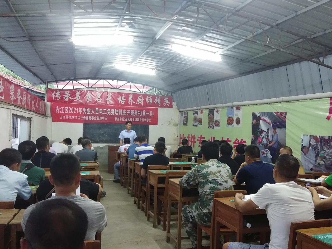 ????????近日,由右江區(qū)社會保險事業(yè)管理中心主辦,廣西百色益嘉職業(yè)技能培訓(xùn)學(xué)校承辦的右江區(qū)2021年失業(yè)人員電工免費(fèi)培訓(xùn)班(第一期)順利開班,培訓(xùn)期十天,約30名失業(yè)人員參加培訓(xùn)。