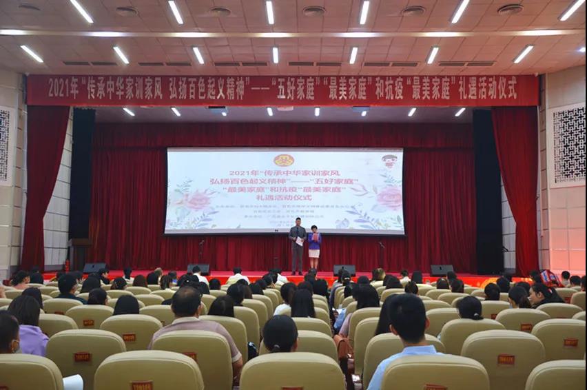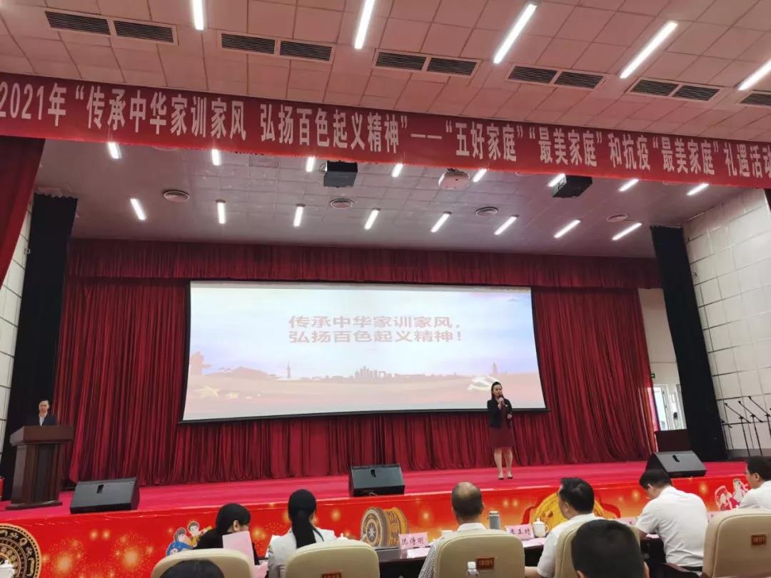 ????????為弘揚中華民族家庭美德、樹立良好家風(fēng)、激勵抗疫精神,落實全國婦聯(lián)、自治區(qū)婦聯(lián)關(guān)于開展尋找“最美家庭”活動精神。4月30日,由百色市婦聯(lián)、市文明辦、市總工會、市教育局聯(lián)合舉辦,廣西益眾文化傳媒有限公司承辦的2021年“傳承中華家訓(xùn)家風(fēng)?弘揚百色起義精神”——“五好家庭”“最美家庭”和抗疫“最美家庭”禮遇活動儀式在右江區(qū)禮堂舉行。來自2020年“五好家庭”“最美家庭”和抗疫“最美家庭”代表、“最美家庭”禮遇愛心單位代表以及百色市市直機關(guān)、企事業(yè)單位和社會各界代表等共計200多人參加活動。