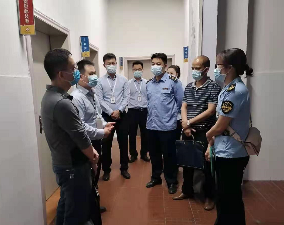 ????????3月18日,右江區(qū)市場(chǎng)監(jiān)督管理局到益眾托管一小校區(qū)開展食品安全監(jiān)督檢查,益眾托管公司負(fù)責(zé)同志陪同檢查。