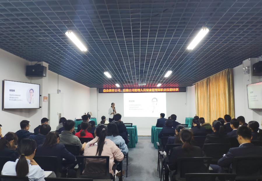 ????????為加強(qiáng)職工隊(duì)伍建設(shè),提升專(zhuān)業(yè)技能,培養(yǎng)專(zhuān)業(yè)人才,11月5日,益眾教育公司、益眾后勤公司聯(lián)合開(kāi)展了健康管理師職業(yè)技能培訓(xùn),50余名管理人員參加。