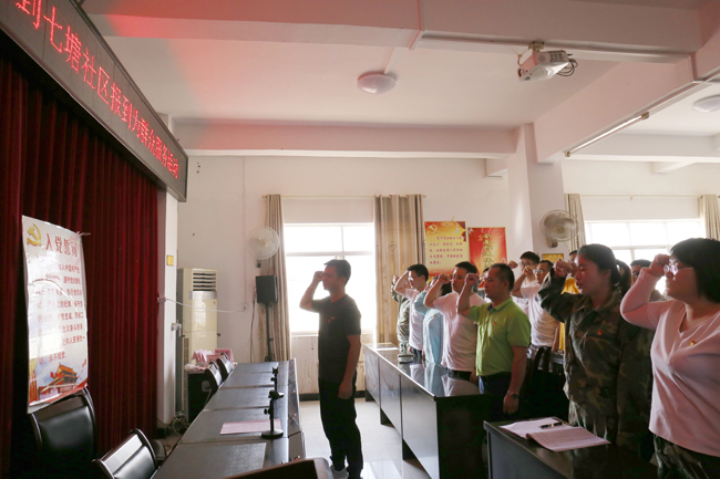 ????????之后,全體黨員重溫《入黨誓詞》?!拔抑驹讣尤胫袊伯a(chǎn)黨,擁護(hù)黨的綱領(lǐng),遵守黨的章程,履行黨員義務(wù),執(zhí)行黨的決定......”,清澈嘹亮的聲音貫穿整個會場,進(jìn)一步強(qiáng)化了黨員的責(zé)任意識。