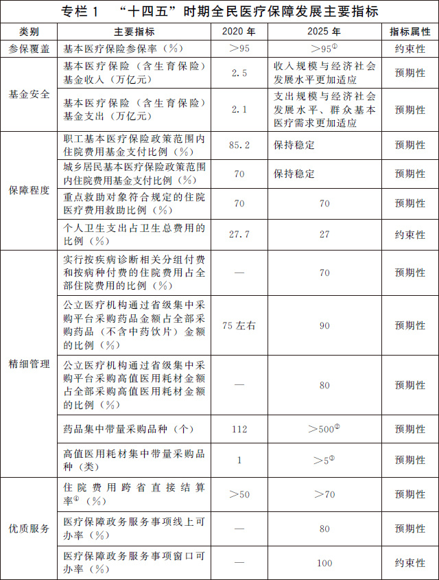 注:①指“十四五”期間基本醫(yī)療保險(xiǎn)參保率每年保持在95%以上。