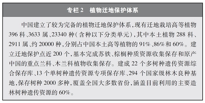 中國持續(xù)加大遷地保護力度,系統(tǒng)實施瀕危物種拯救工程,生物遺傳資源的收集保存水平顯著提高,遷地保護體系日趨完善,成為就地保護的有效補充,多種瀕危野生動植物得到保護和恢復(fù)。