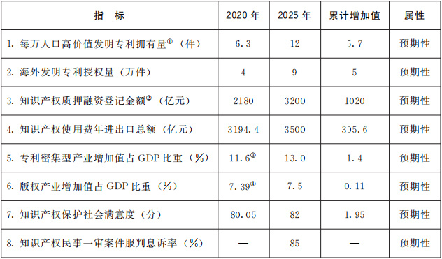 “十四五”時期知識產(chǎn)權(quán)發(fā)展主要指標(biāo)