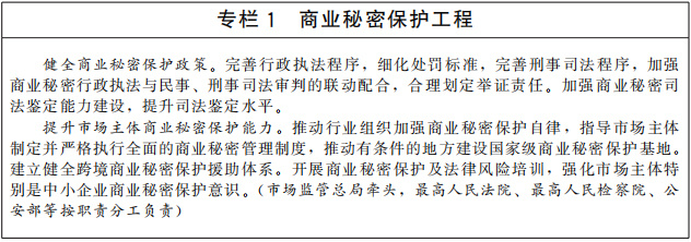 健全知識產(chǎn)權(quán)法律法規(guī)。開展知識產(chǎn)權(quán)基礎(chǔ)性法律研究。統(tǒng)籌推進(jìn)專利法、商標(biāo)法、著作權(quán)法、反壟斷法、科學(xué)技術(shù)進(jìn)步法、電子商務(wù)法等相關(guān)法律法規(guī)的修改完善。加強(qiáng)地理標(biāo)志、商業(yè)秘密等領(lǐng)域立法,出臺商業(yè)秘密保護(hù)規(guī)定。完善集成電路布圖設(shè)計法規(guī)。推進(jìn)修訂植物新品種保護(hù)條例。制定中醫(yī)藥傳統(tǒng)知識保護(hù)條例。完善與國防建設(shè)相銜接的知識產(chǎn)權(quán)法律制度。全面建立并實施知識產(chǎn)權(quán)侵權(quán)懲罰性賠償制度,加大損害賠償力度。研究建立健全符合知識產(chǎn)權(quán)審判規(guī)律的特別程序法律制度。適應(yīng)科技進(jìn)步和經(jīng)濟(jì)社會發(fā)展需要,依法及時推動知識產(chǎn)權(quán)法律法規(guī)立改廢釋。(中央宣傳部、最高人民法院、最高人民檢察院、科技部、工業(yè)和信息化部、司法部、農(nóng)業(yè)農(nóng)村部、商務(wù)部、國家衛(wèi)生健康委、市場監(jiān)管總局、國家國防科工局、國家林草局、國家中醫(yī)藥局、國家知識產(chǎn)權(quán)局、中央軍委裝備發(fā)展部等按職責(zé)分工負(fù)責(zé))