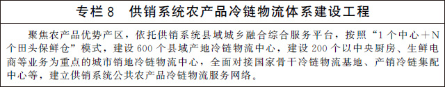 ——基礎(chǔ)設(shè)施更加完善。依托農(nóng)產(chǎn)品優(yōu)勢產(chǎn)區(qū)、重要集散地和主銷區(qū),布局建設(shè)100個左右國家骨干冷鏈物流基地;圍繞服務(wù)農(nóng)產(chǎn)品產(chǎn)地集散、優(yōu)化冷鏈產(chǎn)品銷地網(wǎng)絡(luò),建設(shè)一批產(chǎn)銷冷鏈集配中心;聚焦產(chǎn)地“最先一公里”和城市“最后一公里”,補齊兩端冷鏈物流設(shè)施短板,基本建成以國家骨干冷鏈物流基地為核心、產(chǎn)銷冷鏈集配中心和兩端冷鏈物流設(shè)施為支撐的三級冷鏈物流節(jié)點設(shè)施網(wǎng)絡(luò),支撐冷鏈物流深度融入“通道+樞紐+網(wǎng)絡(luò)”現(xiàn)代物流運行體系,與國家物流網(wǎng)絡(luò)實現(xiàn)協(xié)同建設(shè)、融合發(fā)展。