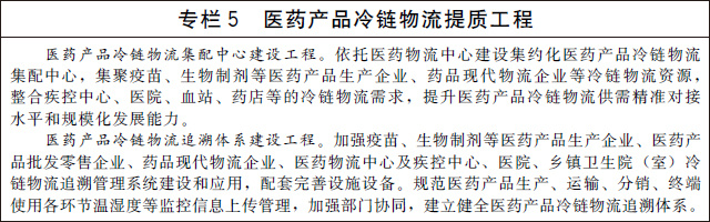 提升醫(yī)藥產(chǎn)品冷鏈物流應(yīng)急保障水平。研究將醫(yī)藥產(chǎn)品冷鏈物流納入國家應(yīng)急物資保障平臺,整合行業(yè)醫(yī)藥冷庫、車輛、標準化載器具等資源,健全應(yīng)急聯(lián)動服務(wù)及統(tǒng)一調(diào)度機制,提高醫(yī)藥產(chǎn)品冷鏈應(yīng)急保障能力。完善全國統(tǒng)一的醫(yī)藥產(chǎn)品冷鏈物流特別管理機制,保障緊急狀態(tài)下疫苗及其他醫(yī)藥產(chǎn)品冷鏈運輸暢通和物流過程質(zhì)量安全。