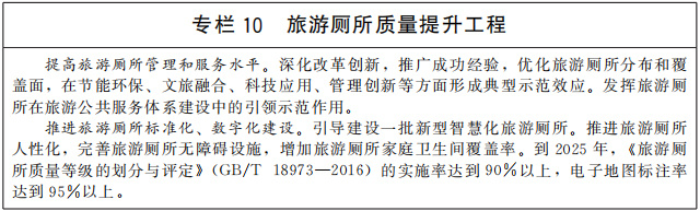 優(yōu)化旅游公共服務(wù)設(shè)施布局,完善配套設(shè)施和功能。適應(yīng)游客出行方式變化,加大面向散客的旅游公共服務(wù)力度??茖W(xué)規(guī)劃建設(shè)旅游景區(qū)停車場(chǎng)、內(nèi)部交通、便民設(shè)施、標(biāo)識(shí)標(biāo)牌等,合理配置廁所、垃圾桶,建設(shè)一批示范性旅游廁所,進(jìn)一步鞏固旅游廁所革命成果。推動(dòng)文化和旅游公共服務(wù)共建共享,探索建設(shè)一批文化和旅游綜合服務(wù)設(shè)施。推動(dòng)文化服務(wù)進(jìn)旅游景區(qū),在旅游設(shè)施、旅游服務(wù)中增加文化元素和內(nèi)涵,體現(xiàn)人文關(guān)懷。充分考慮特殊群體需求,健全無障礙旅游公共服務(wù)標(biāo)準(zhǔn)規(guī)范,加強(qiáng)老年人、殘疾人等便利化旅游設(shè)施建設(shè)和改造,推動(dòng)將無障礙旅游內(nèi)容納入相關(guān)無障礙公共服務(wù)政策。